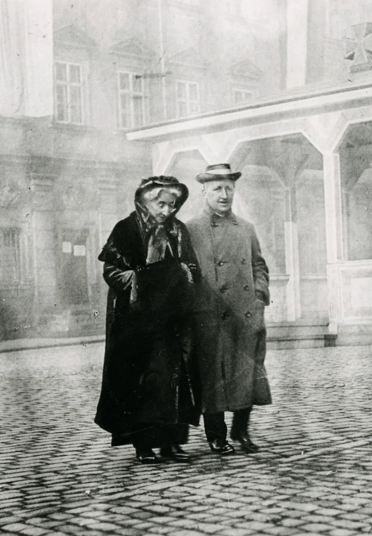 Desde su llegada a Tribschen, Cósima recogió cada día los hechos y opiniones de su esposo. Sus 4.000 páginas pretendían ser la base con que continuar las memorias del compositor, que acaban cuando obtiene el patrocinio de Luis II de Baviera en 1864. Las notas de Cósima se extienden hasta la muerte de Wagner en el 83, y Siegfried estaba destinado a ser su custodio. Pero Eva —intrigante una vez más— se apoderó de ellas y las retuvo hasta 1935. En esa fecha las donó a la ciudad de Bayreuth. Eso sí: queriendo evitar que cierto archivero lo husmeara todo, se guardó veintiún cuadernos en una cámara acorazada de Múnich. Solo en la década de los 70 se pudieron editar, treinta años después —ni uno menos, según su expreso deseo— de la muerte de Eva. La dirección del Festival, asumida por Cósima en 1883, sí cayó en manos del benjamín de 1908 a 1930. En la foto, Cósima y Siegfried en los años 20.