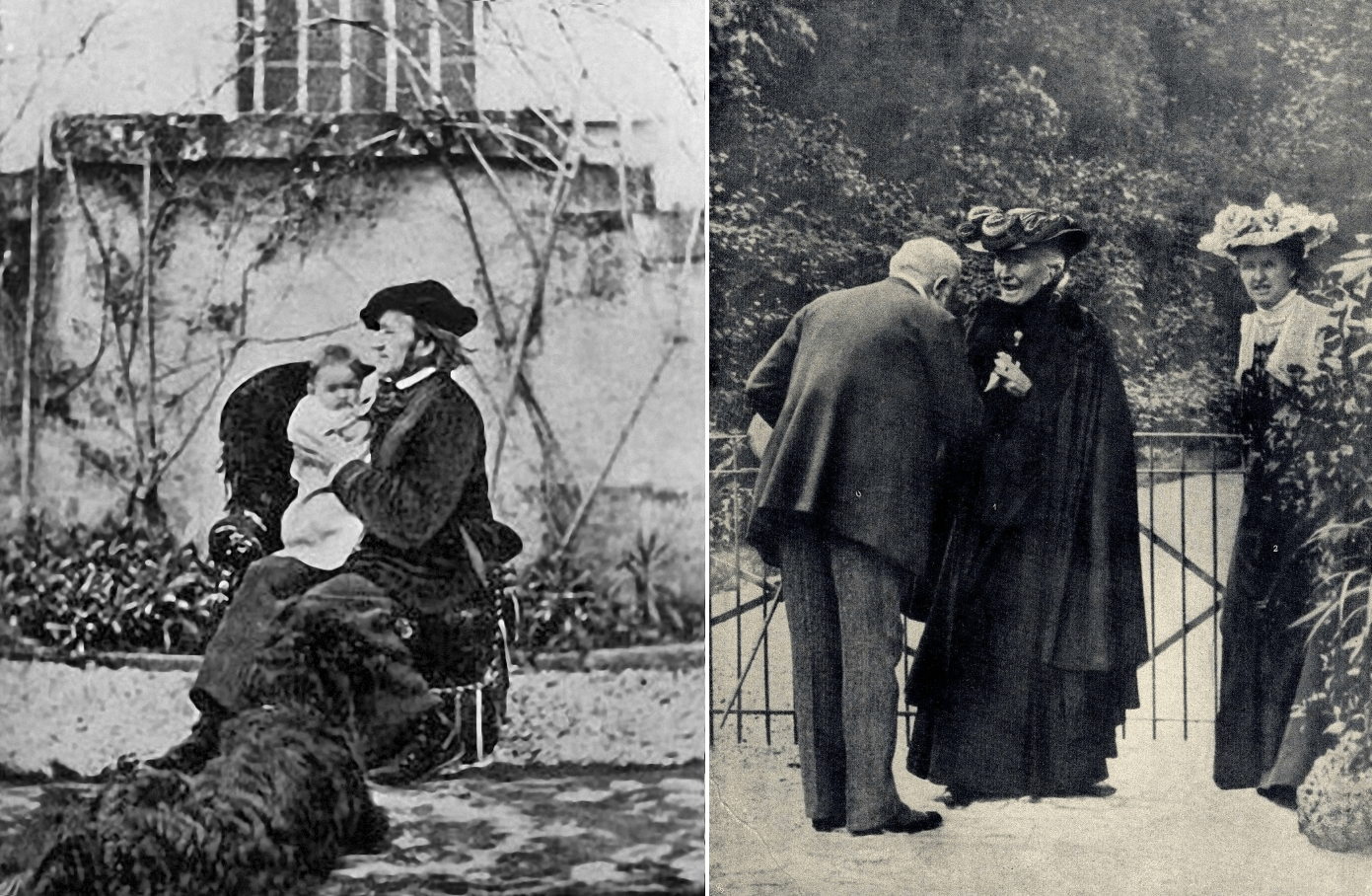 A la izquierda, Wagner en Tribschen (1867) con su hija Eva; al lado, Cósima y Eva en Bayreuth (1906). Figura polémica, Eva se casó en 1908 con Houston Stewart Chamberlain, filósofo inglés nacionalizado alemán que apoyaría a Hitler desde sus inicios en la política. Con justicia o sin ella, el nombre del clan Wagner —profundamente antisemita— ya nunca pudo separarse del nazismo. Aquí puedes leer más.