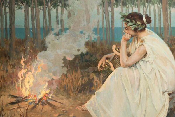 Esta ilustración para el primer libro de Los mártires se puede ver hoy en la casa de Chateaubriand en Châtenay-Malabry. Muestra a Eudoro devolviendo a Cimodocea a su padre Demódoco, tras hallarla perdida en los bosques del Taigeto. El argumento de esta «epopeya en prosa» inspiró al menos a dos artistas españoles. En 1860, Antonio del Castillo y Aguado pintó Eudoro dormido en el bosque, poco antes de encontrarle Cimodocea, obra perdida de la que no se ha conservado imagen. En 1884, José Bernardo Mateos eligió el final de la obra para su Eudoro y Cimodocea en el anfiteatro, que presenta a los protagonistas y a otros cristianos a punto de ser víctimas de las fieras. Haz clic aquí para saber más de estos cuadros; aquí, para ver el de Mateos.