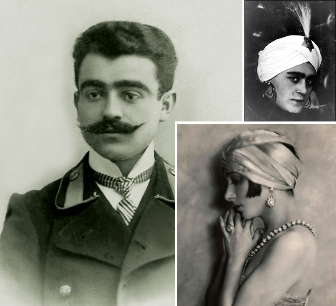A pesar de que sus textos autobiográficos parecen confirmarlo como autor de Alí y Nino, el problema de Chamanzaminli —a la izquierda— sigue siendo discutido por la elección de la lengua alemana. Si Nussimbaum —arriba a la derecha— participó realmente, no se contentó con apropiarse del libro, sino que quizá tomó sus aportaciones del escritor georgiano Grigol Robakidze. Finalmente, nada prueba que la baronesa Ehrenfels hiciera más que registrar el texto. Haz clic en la imagen o aquí para saber más sobre este galimatías, que llegó a inspirar el documental Alias Kurban Said en 2004.