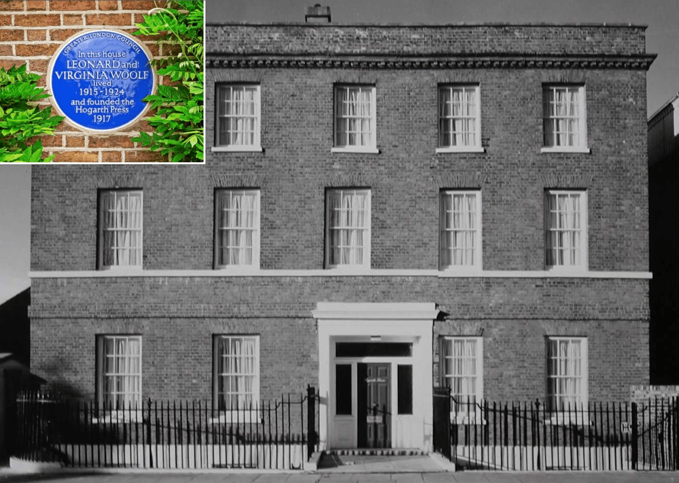 Foto histórica del que fue hogar de los Woolf entre 1915 y 1924. Se mantiene en pie en el número 34 de Paradise Road, en Richmond —Londres—, y en su salón instaló la pareja su primera imprenta. Una placa recuerda actualmente el pasado de la casa. Virginia siempre combinó la ciudad con estancias en el campo. Conoce aquí los espacios de su vida; aquí se muestra un recorrido virtual por el Londres de Virginia; y aquí puedes entrar en Monk’s House.
