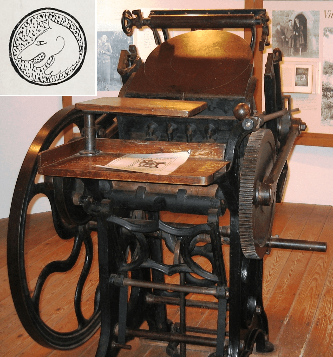 Con esta máquina Minerva, comprada en 1917, los Woolf crearon la famosa Hogarth Press. Su primer volumen incluía un relato de cada uno, y su tirada fue de 150 ejemplares impresos manualmente. La editorial fue pionera en la publicación en inglés de textos psicoanalíticos. De hecho, Leonard dijo que su mayor logro fue editar las obras completas de Freud, traducidas por James Strachey —hermano de Lytton— entre 1953 y 1966. En 1918, la pareja rechazó el Ulises de Joyce, que disgustó a Virginia desde el principio. La Hogarth sigue activa hoy en día, pero pertenece a Random House desde 1987. Puedes conocer mejor su historia aquí, aquí y aquí.