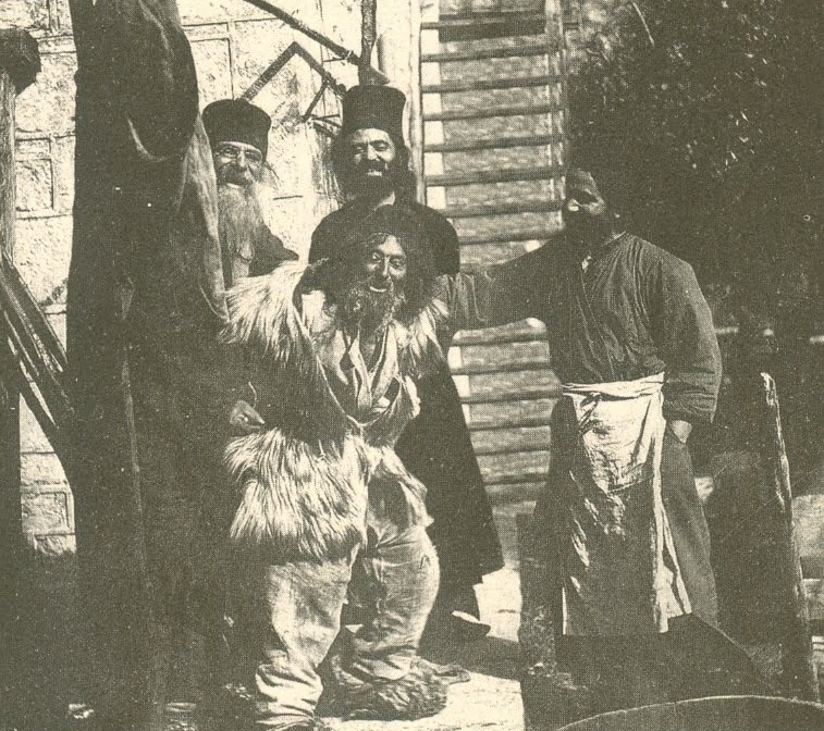 El yurodivy se asocia más a Rusia, pero se halla en todo el cristianismo ortodoxo. La imagen se tomó en 1925 en la comunidad de Kafsokalivia —en el Monte Athos—. Allí solía verse al «loco» Agathon, semidesnudo en verano y cubierto de pieles en invierno. No se sabe muy bien de qué vivía cuando otros no le daban de comer. Puedes ampliar la foto o pinchar aquí para leer más sobre los yurodivye.