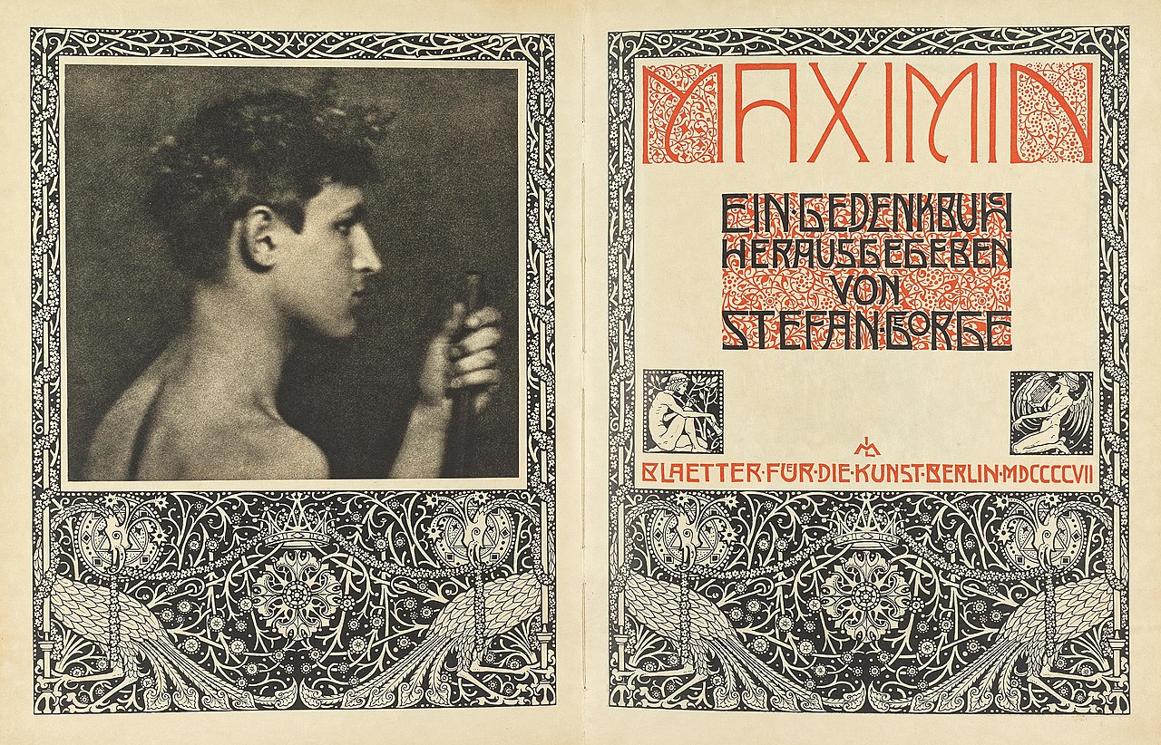 Pero hablemos de Maximin. Fascinado, como buen decadente, por el catolicismo —no por su doctrina, pero sí por el rito y la leyenda—, George necesitaba un dios del que erigirse en sacerdote. Como un nuevo Adriano, que instituyó en Roma el culto a su difunto favorito Antínoo, el poeta cantó al apuesto dios Maximin en sus últimas obras. Maximin es la «apoteosis» —o divinización— del poeta de trece años Maximilian Kronberger, al que George conoció en 1902 y cuya muerte por meningitis en 1904 —un día después de cumplir los dieciséis— lo dejó conmocionado. Había introducido al chico en la llamada «Alemania secreta», expresión rescatada del pasado con la que George y los suyos aludían a su élite iniciada, preservadora de una esencia imperial y espiritual que encarnaban Federico de Prusia y Luis II de Baviera. En él encontró Stefan al único dios digno de su reverencia: niño eterno, hermoso para siempre, síntesis de espíritu germánico y heleno. Por fin George tiene un credo «que dé cuerpo al dios y que endiose al cuerpo».