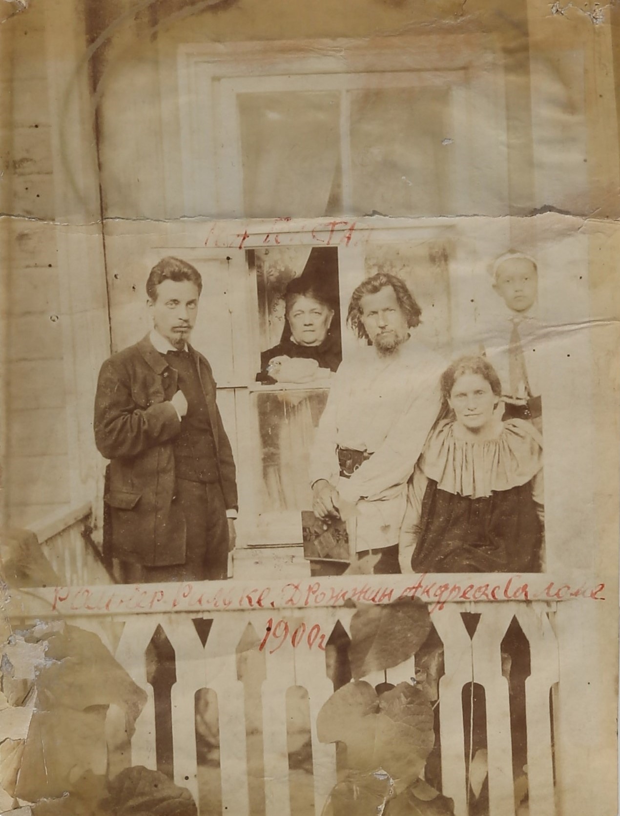 No tenemos fotos de Rilke y Salomé junto a Tolstói, pero nos consta que ambos quedaron marcados por sus dos encuentros con el noble ruso —en abril de 1899 y mayo de 1900—. Aun así Salomé, con su habitual espíritu crítico, aludió en su diario de viaje a la «superficialidad de las teorías que el propio Tolstói expone en sus panfletos religiosos». Aparte de las visitas al conde, lo que Rilke vivió en Rusia dejó una clara huella en su poesía. En la imagen, Rainer y Lou posan junto al poeta y campesino Spiridón Droschin, que impresionó a Rilke hasta el punto de traducir su obra al alemán. Los nombres y la fecha en rojo son del puño y letra de Droschin. Pincha aquí para saber más sobre lo ruso en Rilke. Aquí puedes leer sobre su relación con Pasternak y Tsvietáieva, cuyas cartas de 1926 editó Minúscula.