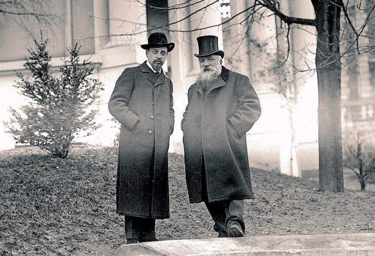 En el año 1900, Rilke se estableció en la colonia de artistas de Worpswede —cerca de Bremen—. Allí conoció a Clara Westhoff, escultora y discípula de Rodin. Con ella, ya convertida en su esposa, llegó Rainer a París en 1902. Cerca de la ciudad —en Meudon— estaba la casa de Rodin, a quien vemos en la imagen junto a Rilke. Pincha aquí o aquí para saber más sobre la relación entre los dos genios.